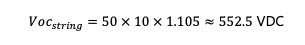 จากนั้นคำนวณ แรงดันสูงสุดของสตริง (Voc_max) ตามสูตร: